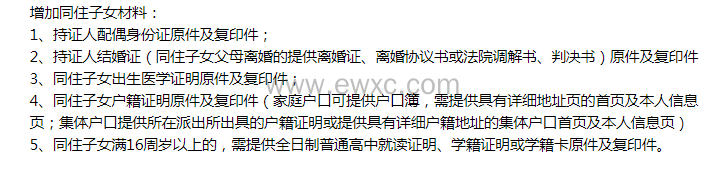 增加同住子女您还需要提供离婚证、离婚协议书或法院调解书、判决书原件及复印件;同住子女出生医学证明原件及复印件;同住子女户籍证明原件及复印件