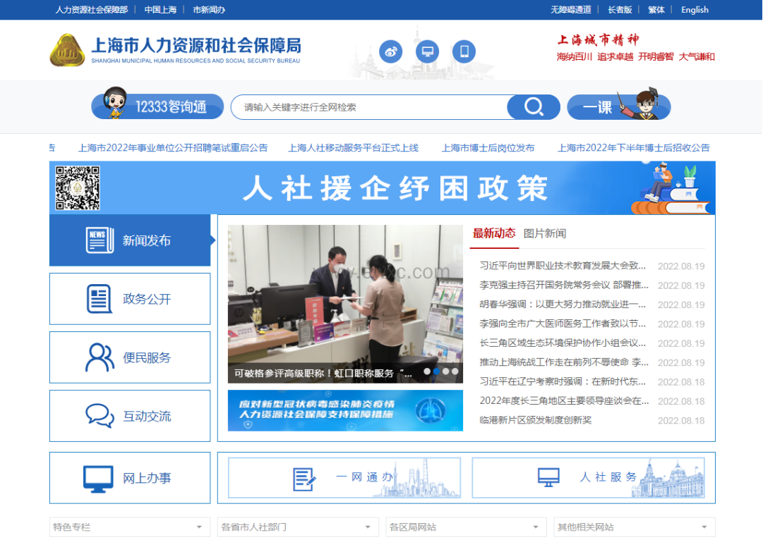 登录上海市人力资源和社会保障局官网:http://rsj.sh.gov.cn/