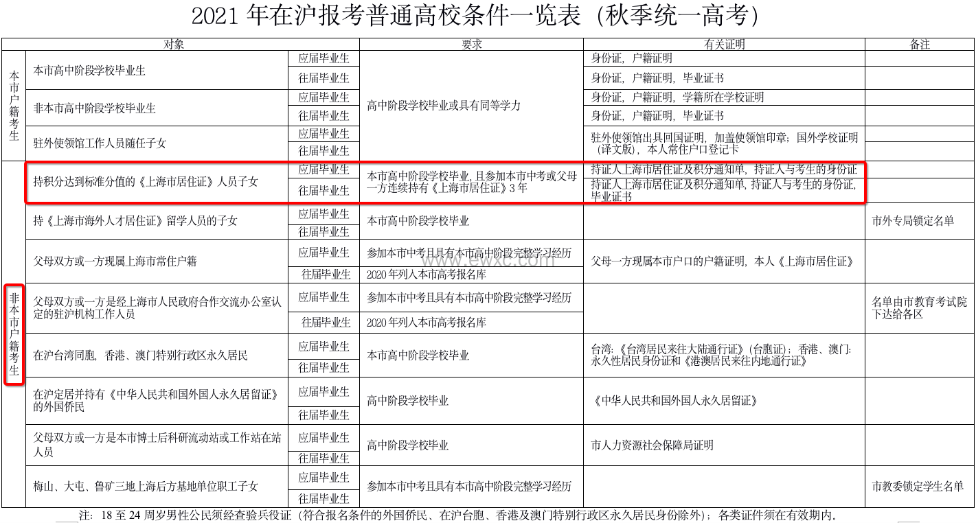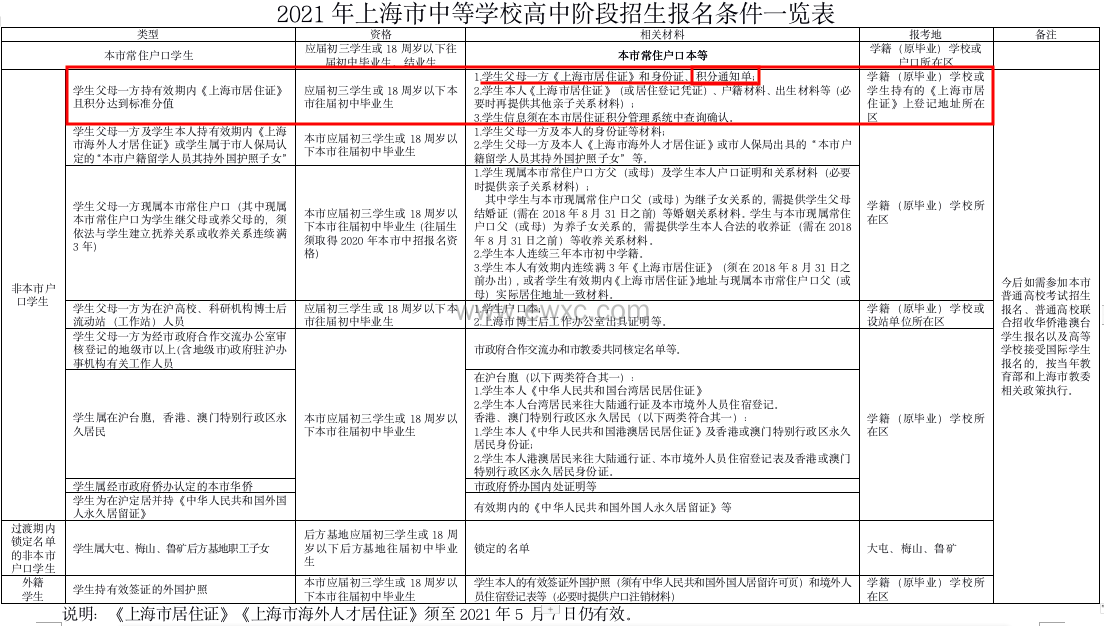 高考:需要在上海有高中3年学籍方能参加上海高考,不仅仅是有积分就行。